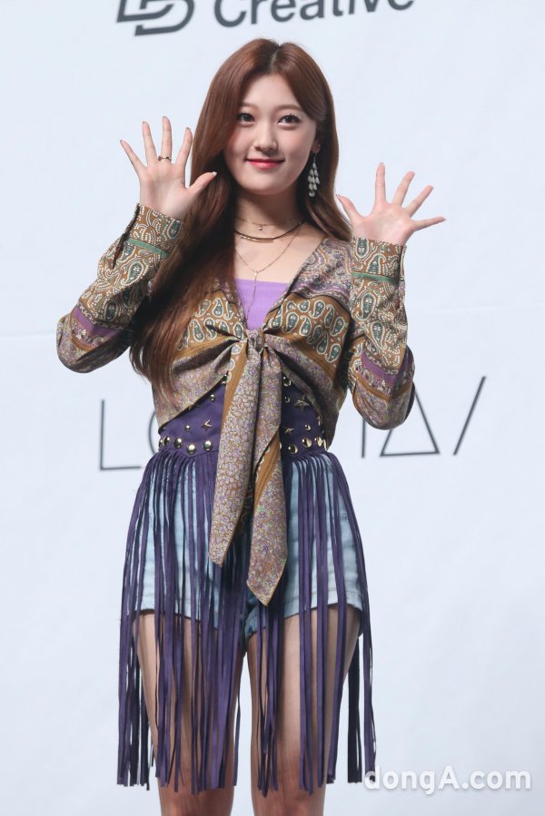 그룹 이달의 소녀의 최리가 19일 오후 서울 용산구 블루스퀘어에서 열린 새 미니앨범 \'미드나잇(12:00)\' 발매 쇼케이스에 참석해 포즈를 취하고 있다.