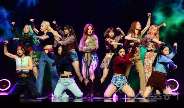 19일 서울 용산구 블루스퀘어 아이마켓홀에서 걸그룹 이달의 소녀 3번째 미니앨범 ‘미드나잇[12:00]’ 발매 기념 쇼케이스가 열렸다. 쇼케이스에 참석한 이달의 소녀가 타이틀곡 ‘Why Not?’을 공연하고 있다.