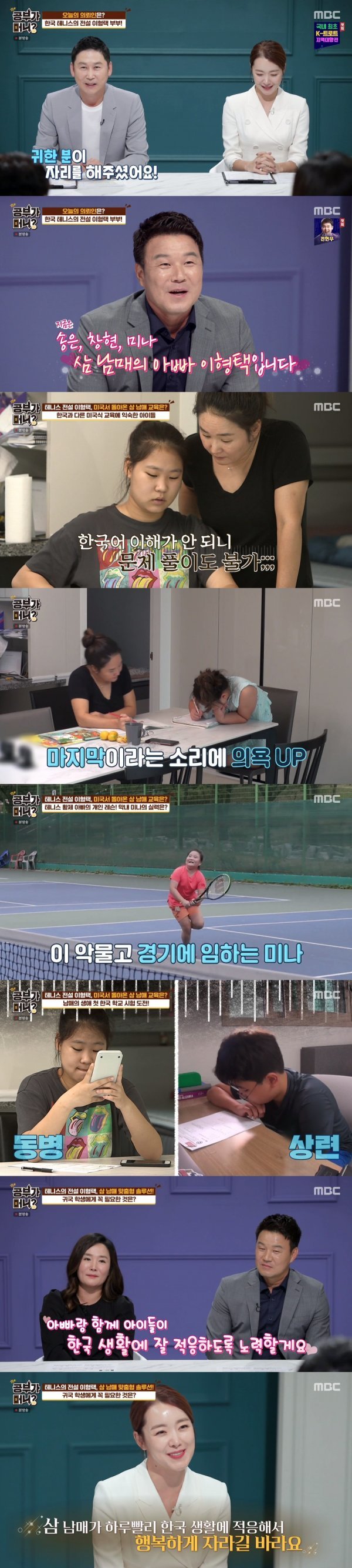 어제(20일) 저녁 9시 20분에 방송된 MBC '공부가 머니?'(기획 박현석/ 프로듀서 선혜윤) 49회에서는 이형택 가족이 출연, 세 자녀가 한국식 교육과 문화에 잘 적응하기 위한 전문가들의 솔루션이 화요일 저녁 훈훈한 감동을 선사했다.