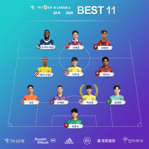 [하나원큐 K리그2 2020 24R MVP, 베스트11, 팀, 매치]