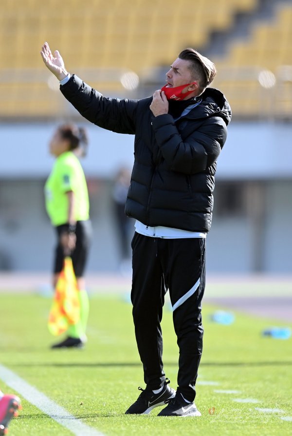 여자 축구 국가대표팀과 20세 이하(U-20) 여자 축구대표팀이 22일 경기도 파주스타디움에서 평가전을 가졌다. 여자 대표팀 콜린 벨 감독이 작전 지시를 하고 있다.