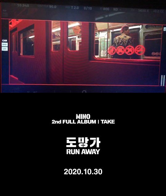 송민호(MINO)의 솔로 정규 2집 타이틀곡 ‘도망가 (Run away)’ 뮤직비디오 장면 일부가 공개돼 팬들의 기대감을 키웠다.