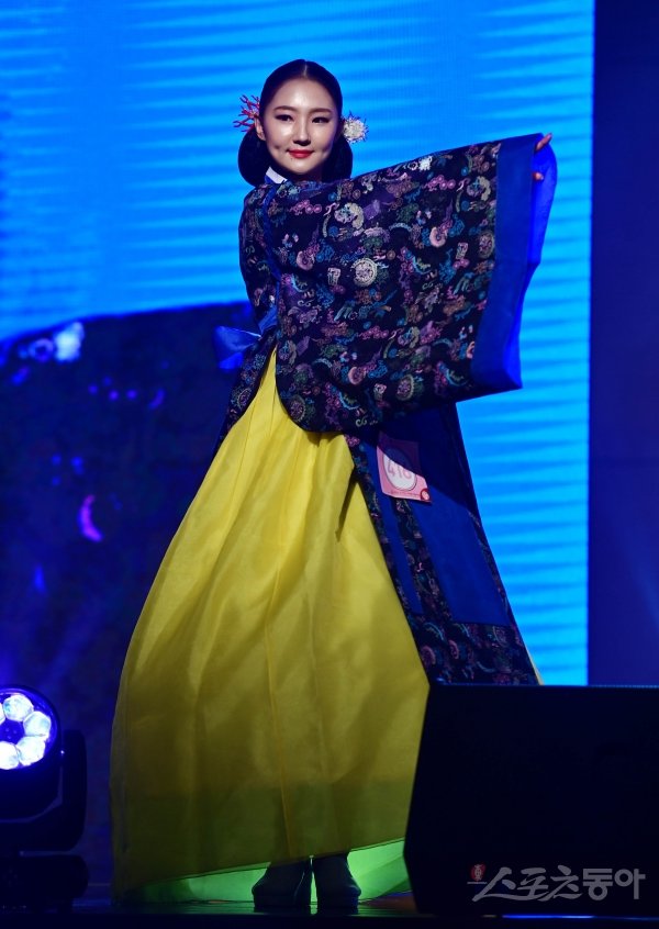24일 서울 광진구 광장동 워커힐 서울에서 열린 ‘소서노 여대왕 2020’ 선발대회에서 미스 부문 기호 416번 이연주가 워킹을 하고 있다. 우리나라 최초이자 유일한 여성 건국자인 ‘소서노 여대왕’을 널리 알리고 업적을 계승, 발전시키기 위한 ‘소서노 여대왕 선발대회’는 백제의상 한복모델 선발대회다. 총 4개 부문으로 대회가 치러지며 각 부문 수상자들은 백제문화 및 대한민국의 홍보대사로 활동하며 현대 여성상을 반영하여 수익금 일부 기부와 사회적 약자인 불우이웃을 돕기 위한 각종 봉사활동을 진행하는 자선대회로 진행될 예정이다.