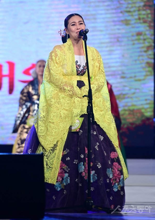 24일 서울 광진구 광장동 워커힐 서울에서 열린 ‘소서노 여대왕 2020’ 선발대회에서 시니어 부문 기호 207번 한수아가 자기소개를 하고 있다. 우리나라 최초이자 유일한 여성 건국자인 ‘소서노 여대왕’을 널리 알리고 업적을 계승, 발전시키기 위한 ‘소서노 여대왕 선발대회’는 백제의상 한복모델 선발대회다. 총 4개 부문으로 대회가 치러지며 각 부문 수상자들은 백제문화 및 대한민국의 홍보대사로 활동하며 현대 여성상을 반영하여 수익금 일부 기부와 사회적 약자인 불우이웃을 돕기 위한 각종 봉사활동을 진행하는 자선대회로 진행될 예정이다.