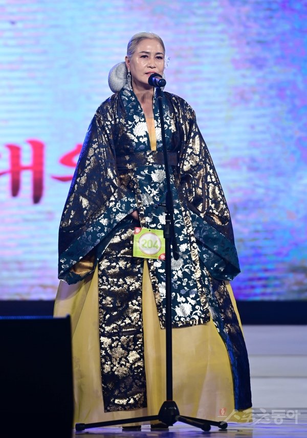 24일 서울 광진구 광장동 워커힐 서울에서 열린 ‘소서노 여대왕 2020’ 선발대회에서 시니어 부문 기호 204번 차영순이 자기소개를 하고 있다. 우리나라 최초이자 유일한 여성 건국자인 ‘소서노 여대왕’을 널리 알리고 업적을 계승, 발전시키기 위한 ‘소서노 여대왕 선발대회’는 백제의상 한복모델 선발대회다. 총 4개 부문으로 대회가 치러지며 각 부문 수상자들은 백제문화 및 대한민국의 홍보대사로 활동하며 현대 여성상을 반영하여 수익금 일부 기부와 사회적 약자인 불우이웃을 돕기 위한 각종 봉사활동을 진행하는 자선대회로 진행될 예정이다.