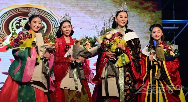 24일 서울 광진구 광장동 워커힐 서울에서 열린 ‘소서노 여대왕 2020’ 선발대회에서 미스 부문 진 한나라, 미시즈 부문 진 김솔하, 시니어 부문 진 김영미, 키즈 부문 진 장미가 기념 촬영을 하고 있다. 우리나라 최초이자 유일한 여성 건국자인 ‘소서노 여대왕’을 널리 알리고 업적을 계승, 발전시키기 위한 ‘소서노 여대왕 선발대회’는 백제의상 한복모델 선발대회다. 총 4개 부문으로 대회가 치러지며 각 부문 수상자들은 백제문화 및 대한민국의 홍보대사로 활동하며 현대 여성상을 반영하여 수익금 일부 기부와 사회적 약자인 불우이웃을 돕기 위한 각종 봉사활동을 진행하는 자선대회로 진행될 예정이다.