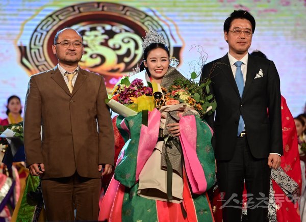 24일 서울 광진구 광장동 워커힐 서울에서 열린 ‘소서노 여대왕 2020’ 선발대회에서 미스 부문 진 한나라가 김현중 조직위원회장, 김호성 내셔널 디렉터와 기념 촬영을 하고 있다. 우리나라 최초이자 유일한 여성 건국자인 ‘소서노 여대왕’을 널리 알리고 업적을 계승, 발전시키기 위한 ‘소서노 여대왕 선발대회’는 백제의상 한복모델 선발대회다. 총 4개 부문으로 대회가 치러지며 각 부문 수상자들은 백제문화 및 대한민국의 홍보대사로 활동하며 현대 여성상을 반영하여 수익금 일부 기부와 사회적 약자인 불우이웃을 돕기 위한 각종 봉사활동을 진행하는 자선대회로 진행될 예정이다.