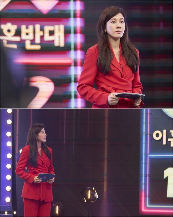 김하늘이 이혼 프로그램 MC로 전격 변신한다. 레드 슈트를 장작하고 강렬한 첫 생방송을 시작한 그의 모습이 포착된다.