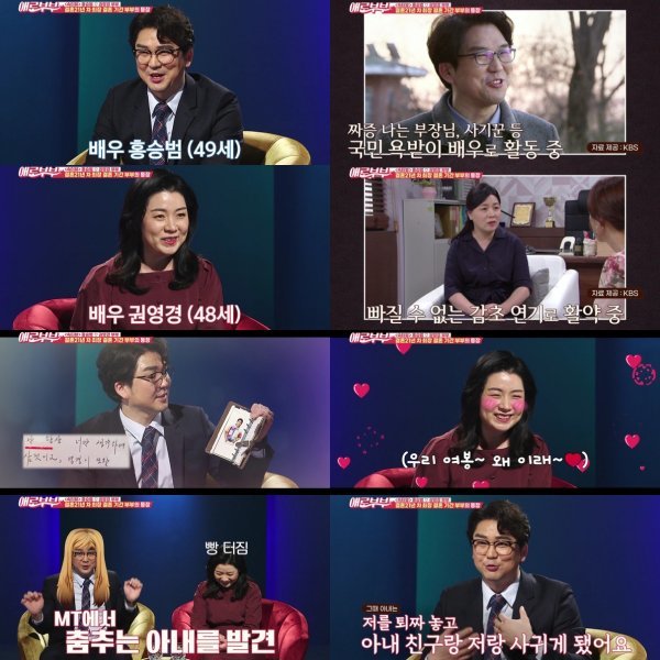 26일 방송되는 ‘애로부부’ 13회 ‘속터뷰’에는 배우 커플로 1999년 결혼에 골인한 홍승범·권영경이 등장한다.