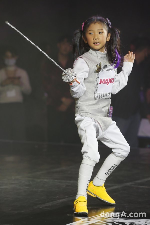 25일 오후 서울 금천구 노보텔 앰배서더 독산 호텔에서 열린 \'2020 맥스큐 머슬마니아 피트니스 코리아 챔피언십\'에서 펜싱 국가대표 출신 남현희의 딸 공하이 양이키즈 마니아 부문 부문에 출전해 포즈를 취하고 있다. 동아닷컴 국경원 기자 onecut@donga.com