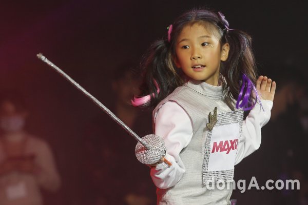 25일 오후 서울 금천구 노보텔 앰배서더 독산 호텔에서 열린 \'2020 맥스큐 머슬마니아 피트니스 코리아 챔피언십\'에서 펜싱 국가대표 출신 남현희의 딸 공하이 양이키즈 마니아 부문 부문에 출전해 포즈를 취하고 있다. 동아닷컴 국경원 기자 onecut@donga.com