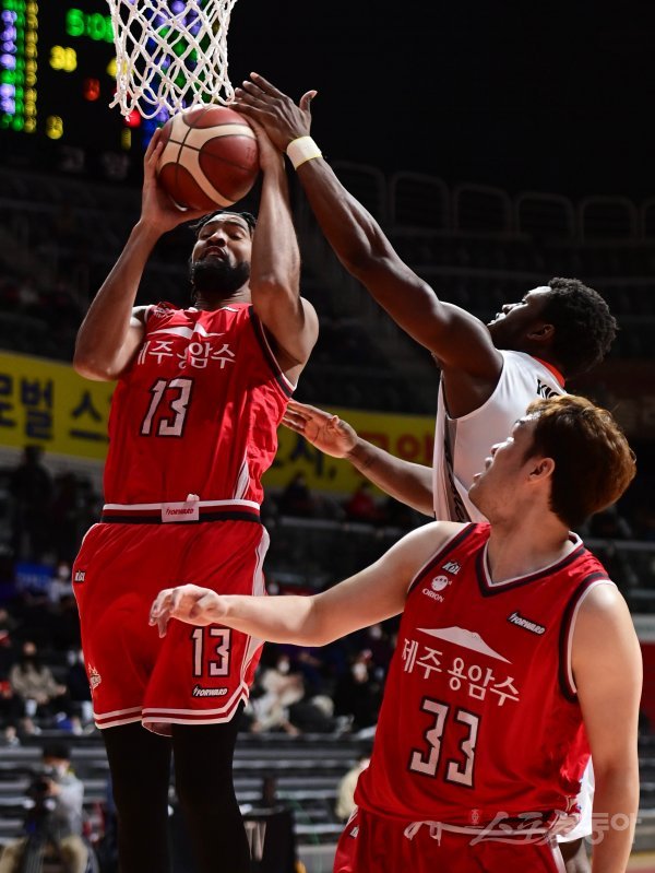 25일 경기 고양시 일산서구 고양체육관에서 열린 ‘2020-2021 현대모비스 프로농구’ 고양 오리온과 인천 전자랜드의 경기에서 고양 오리온 로슨이 리바운드를 잡고 있다.