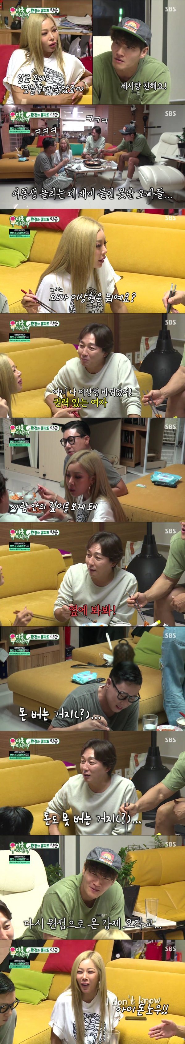 탁재훈이 “난 이상형이 바뀌었어. 권력 있는 여자”라고 답했고, 이에 제시 역시 “나도 바뀌었다. 외모와 돈 보다도 사람 안의 깊이를 보게 된다”고 언급했다. 그러자 탁재훈은 “그럼, 거지도 좋냐? 옆에 봐봐…돈 버는 거지(?)”라고 이상민을 가리켰고, 이에 이상민은 “형은 뭐 돈 있냐?”라고 발끈했다. 이에 졸지에 탁재훈은 돈도 못 버는 거지(?)로 추락하며 폭소를 안겨주었다. 이 장면은 이날 배꼽잡는 웃음을 선사하며 14.6% 최고의 1분을 장식했다.