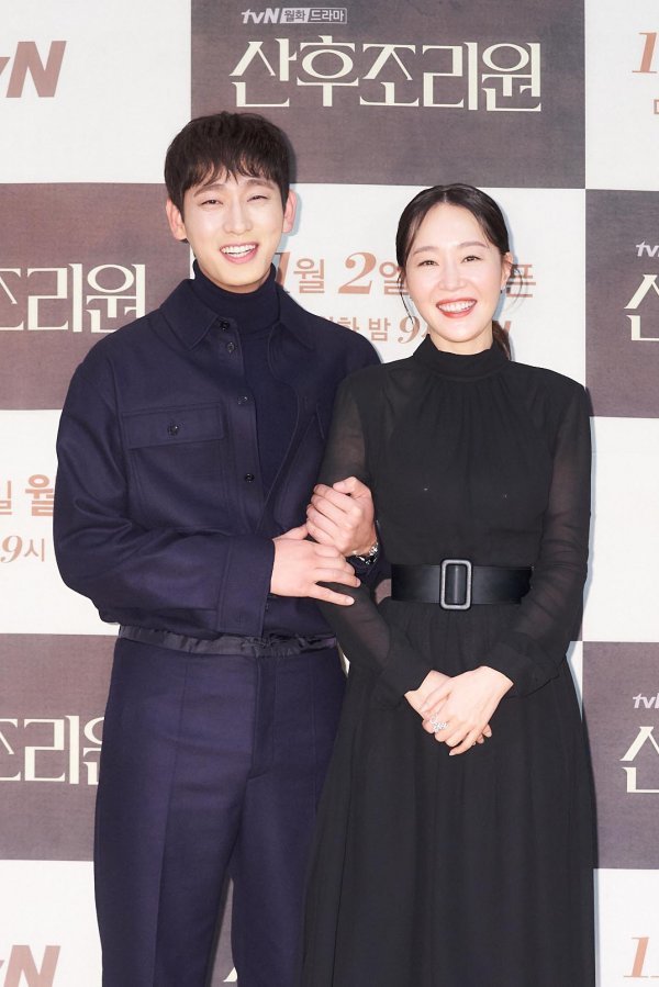 배우 윤박(왼쪽)과 엄지원이 26일 오후 tvN 월화드라마 \'산후조리원\' 온라인 제작발표회에 참석해 포즈를 취하고 있다.