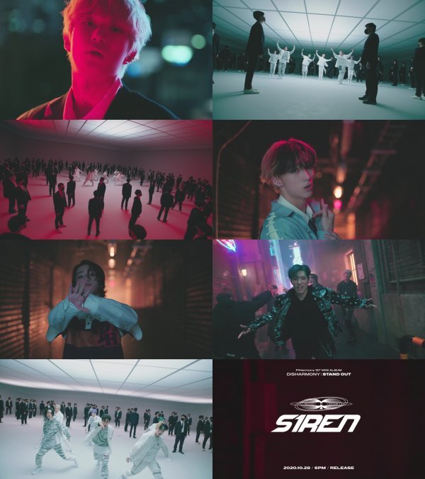 P1Harmony의 소속사 FNC엔터테인먼트는 26일 P1Harmony의 공식 SNS를 통해 첫 번째 미니 앨범 ‘DISHARMONY : STAND OUT’의 타이틀 곡 ‘SIREN’의 두 번째 뮤직비디오 티저를 공개했다.