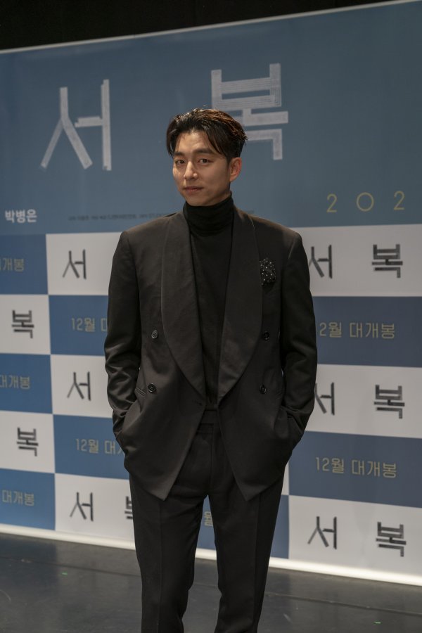 배우 공유가 27일 열린 영화 \'서복\' 온라인 제작보고회에 참석해 포즈를 취하고 있다.