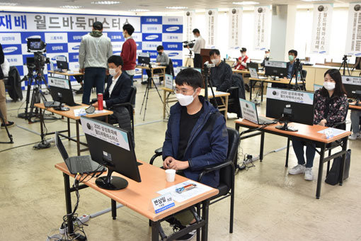 서울 성동구 마장로 한국기원에서 온라인으로 32강전을 치르고 있는 한국선수들. 사진제공|한국기원