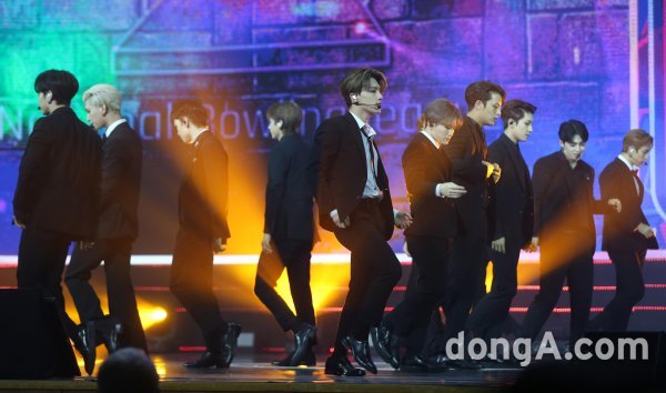 그룹 세븐틴이 28일 오후 서울 동대문구 경희대 평화의전당에서 열린 \'2020 대한민국 대중문화예술상\' 시상식에서 축하무대를 꾸미고 있다.