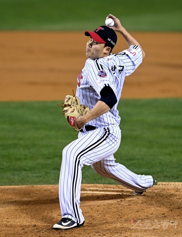 LG 선발투수 임찬규가 힘차게 볼을 던지고 있다.