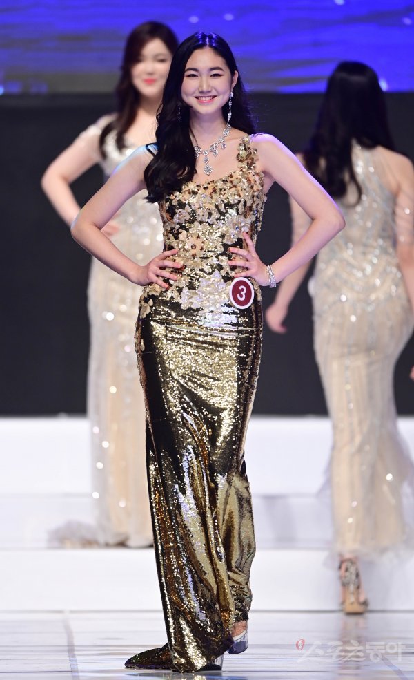 30일 서울 광진구 광장동 그랜드 워커힐 호텔에서 열린 ‘2020 미스 로얄 코리아’ 선발대회에서 기호 3번 안민주가 드레스 퍼레이드를 하고 있다. ‘미스 로얄 코리아’는 세계 미인대회 빅5, 세계 5 그랜드 슬램 월드 대회인 ‘미스 투어리즘 퀸 인터내셔널’, ‘미스 아시아 퍼시픽 인터내셔널’, ‘페이스 오브 뷰티 인터내셔널’ 등 세계적인 월드대회에 각각 한국대표 선발을 겸하는 대회이다. 수상자들은 글로벌 문화산업과 뷰티, 패션산업을 대표하는 대한민국 홍보대사로 활동하게 되며 대한적십자사를 통해 행사 수익금 일부를 기부하고 자원봉사 활동을 실천할 예정이다.