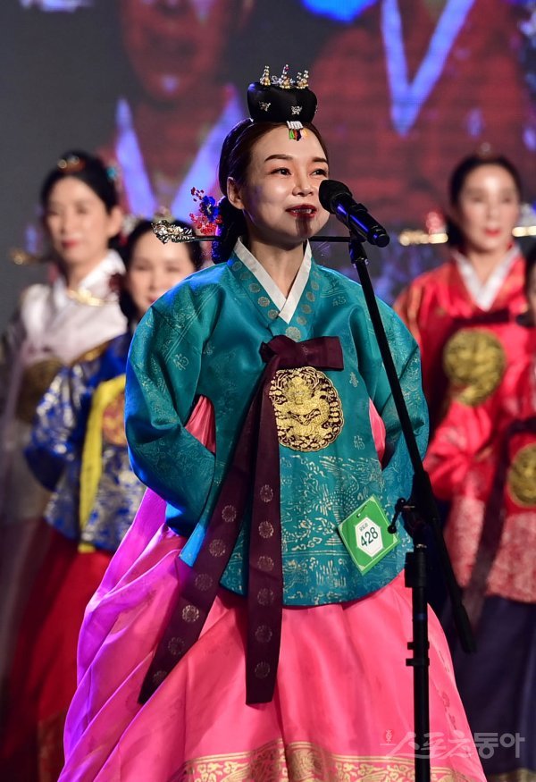 1일 서울 광진구 광장동 그랜드 워커힐 호텔에서 열린 ‘세종대왕-소헌왕후’ 선발대회에서 모도리 부문 여자 428번 박현서가 자기소개를 하고 있다.