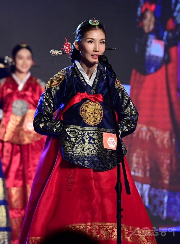 1일 서울 광진구 광장동 그랜드 워커힐 호텔에서 열린 ‘세종대왕-소헌왕후’ 선발대회에서 송아리 부문 여자 605번 전윤혜가 자기소개를 하고 있다.