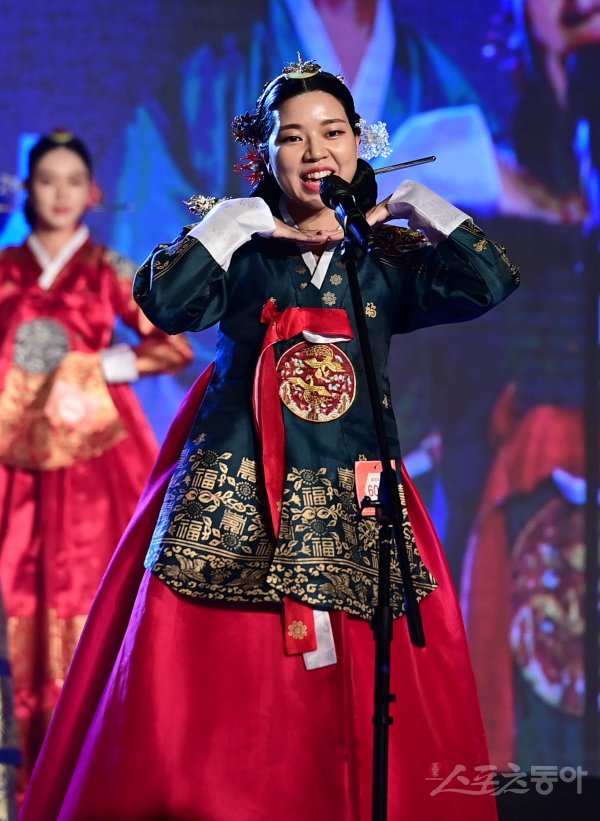1일 서울 광진구 광장동 그랜드 워커힐 호텔에서 열린 ‘세종대왕-소헌왕후’ 선발대회에서 송아리 부문 여자 606번 이선경이 자기소개를 하고 있다.