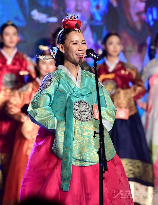 1일 서울 광진구 광장동 그랜드 워커힐 호텔에서 열린 ‘세종대왕-소헌왕후’ 선발대회에서 송아리 부문 여자 633번 강태경이 자기소개를 하고 있다.