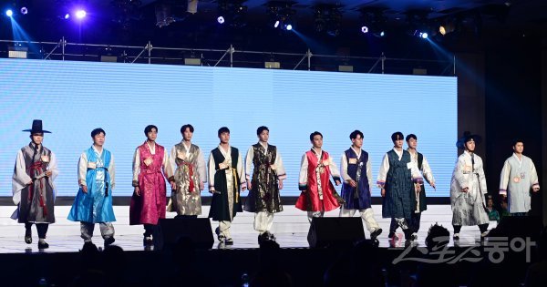 1일 서울 광진구 광장동 그랜드 워커힐 호텔에서 열린 ‘세종대왕-소헌왕후’ 선발대회에서 세종대왕 부문 참가자들이 워킹을 하고 있다. ‘세종대왕-소헌왕후’ 선발대회는 우리 역사상 가장 위대한 성군인 세종대왕을 널리 알리고 업적을 계승하고 발전시키기 위해 2018년부터 3년 째 이어가고 있다. 한글의 우수성과 한복의 아름다움, 한식의 세계화 및 한류문화를 전세계에 알릴 홍보 사절단으로 선발, 월드대회에 한국 대표로 참가할 예정이다.
