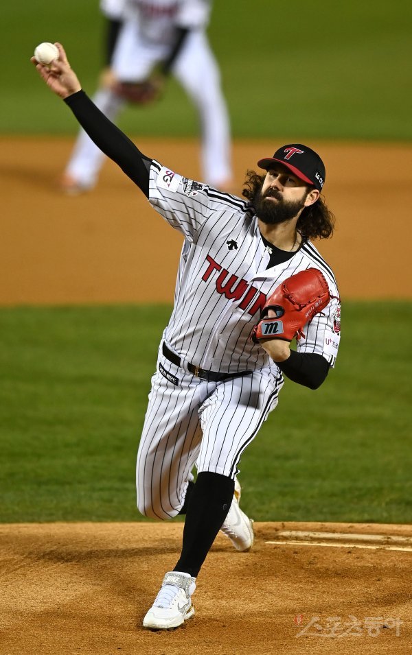 선발 투수로 등판한 LG 켈리가 역투하고 있다.