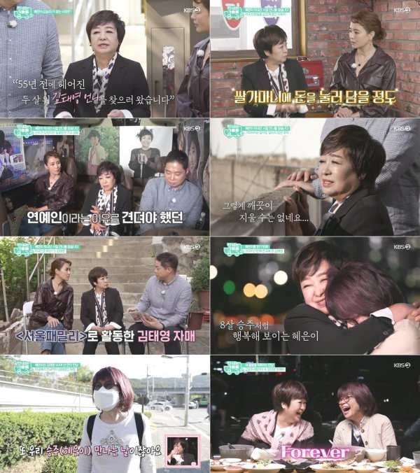 어제 방송에서는 가수 혜은이가 50여 년 만에 악극단 시절 절친 언니 김태영씨와 재회한 이야기가 그려졌다.