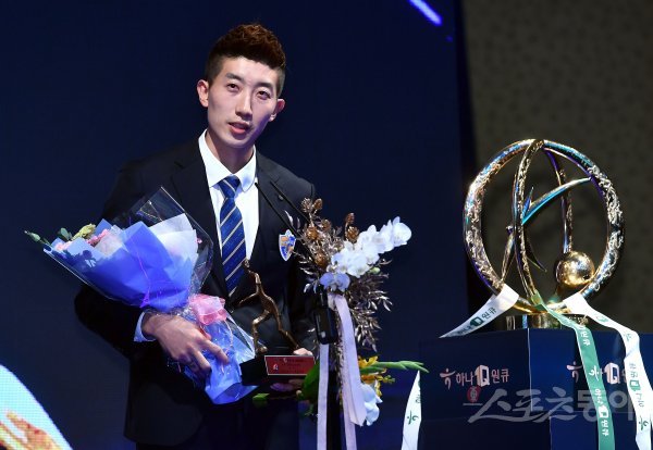 5일 서울 서대문구 홍은동 스위스그랜드호텔에서 ‘하나원큐 K리그 대상 시상식 2020’이 열렸다. 베스트11 GK 부문에 선정된 조현우(울산)가 수상 소감을 말하고 있다.