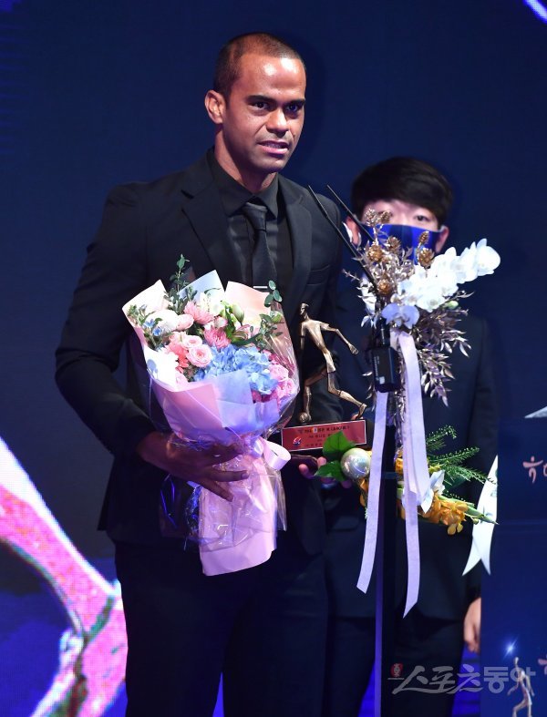 5일 서울 서대문구 홍은동 스위스그랜드호텔에서 ‘하나원큐 K리그 대상 시상식 2020’이 열렸다. 베스트11 FW 부문에 선정된 주니오(울산)가 수상 소감을 말하고 있다.