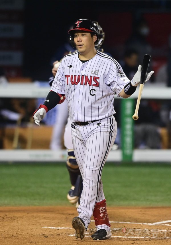 1회말 2사 LG 김현수가 삼진 아웃을 당한 후 더그아웃으로 향하고 있다.