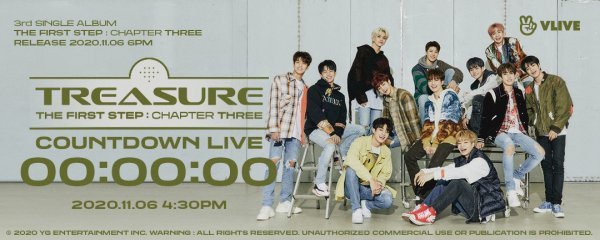 트레저는 음원 공개 1시간 30분 전인 오늘(6일) 오후 4시 30분부터 약 80분 동안 \'카운트다운 라이브\'로 팬들과 먼저 만난다. 네이버 V라이브로 진행되는 이 방송에서 트레저는 새 앨범 소개부터 비하인드 토크, 질의응답 등 코너로 팬들과 특급 소통할 예정이다.