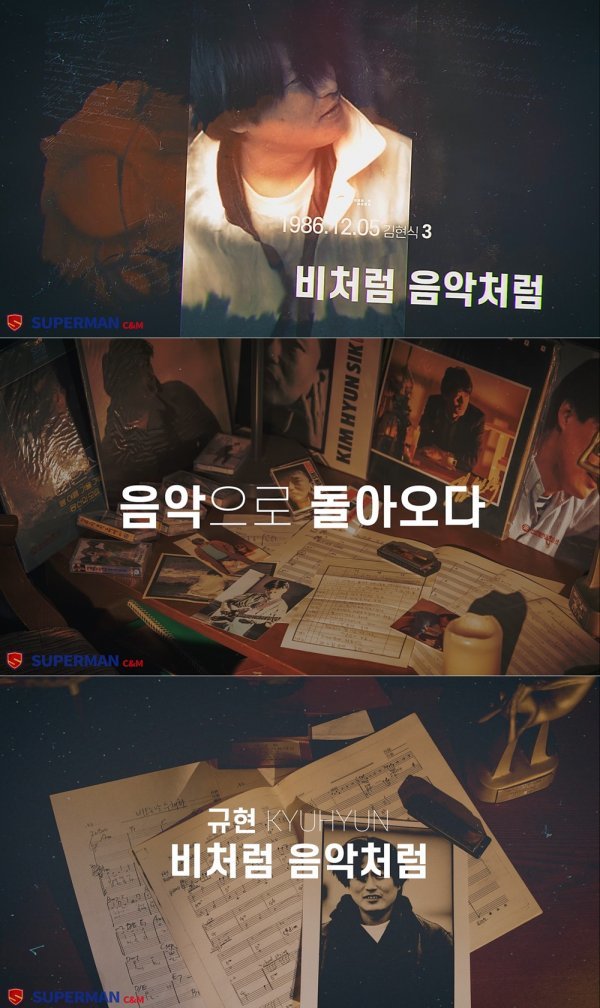 공개된 영상 속에는 故 김현식의 활동 당시 사진과 히트곡이 편집된 인트로 영상과 녹음실에서 ‘비처럼 음악처럼’ 작업에 매진 중인 규현의 모습이 담겼다. 특히 영상 말미에는 故 김현식의 살아생전 콘서트 장면이 짧게 삽입돼 눈길을 끌었다. 무대 위로 날아온 관객의 꽃다발을 받고 미소 짓는 김현식의 모습이 뭉클함을 선사했다.