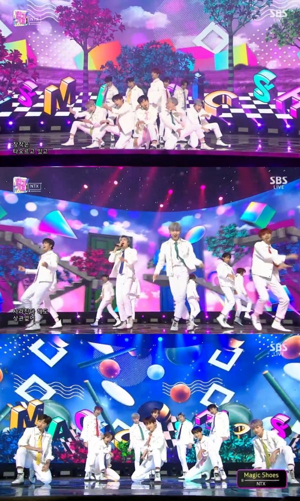 NTX는 8일 오후 방송된 SBS ‘인기가요’에 출연해 신곡 ‘매직슈즈(MAGIC SHOES)’로 무대를 펼쳤다.