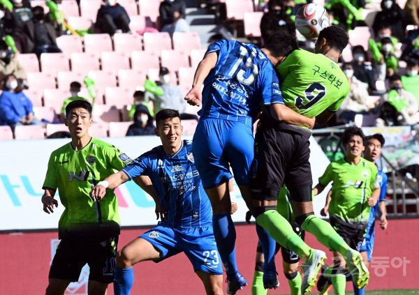 8일 전라북도 전주월드컵경기장에서 열린 ‘2020 하나은행 FA CUP’ 전북 현대와 울산 현대의 결승 경기에서 전북 구스타보가 헤딩슛을 날리고 있다.