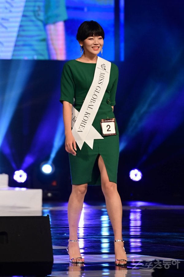 8일 서울 광진구 광장동 그랜드 워커힐 호텔에서 열린 ‘미스 글로벌 코리아’ 선발대회에서 참가번호 2번 이재원이 자기소개를 위해 입장하고 있다.