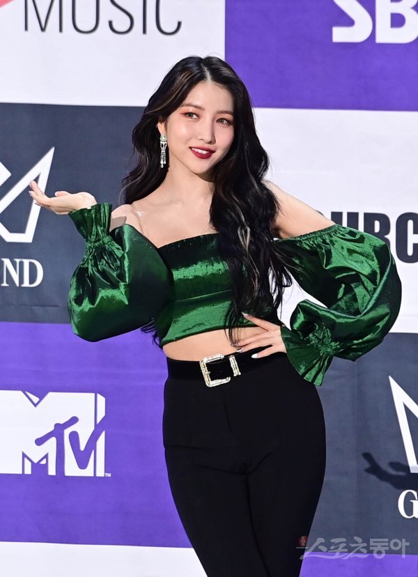 그룹 여자친구 소원이 9일 서울 마포구 상암동 SBS프리즘타워에서 열린 정규앨범 3집 ‘回:Walpurgis Night(회:발푸르기스의 밤)’ 발매 프레스 쇼케이스에서 포즈를 취하고 있다.