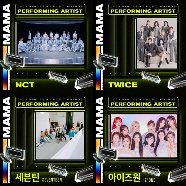 ‘2020 MAMA’(Mnet ASIAN MUSIC AWARDS, 엠넷 아시안 뮤직 어워즈)에 글로벌 대세 아티스트가 총출동한다. 세븐틴, 트와이스, NCT, 아이즈원이 ‘2020 MAMA’ 아티스트 라인업에 이름을 올려 팬들의 기대감을 한껏 끌어올릴 전망이다.