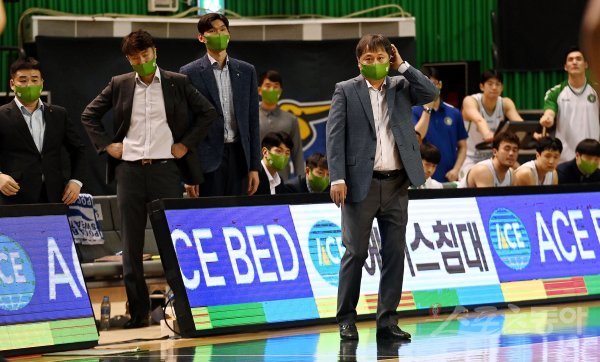 11일 서울 잠실실내체육관에서 열린 ‘2020-2021 현대모비스 프로농구’ 서울 삼성과 원주 DB의 경기에서 DB 이상범 감독이 경기를 지켜보고 있다.