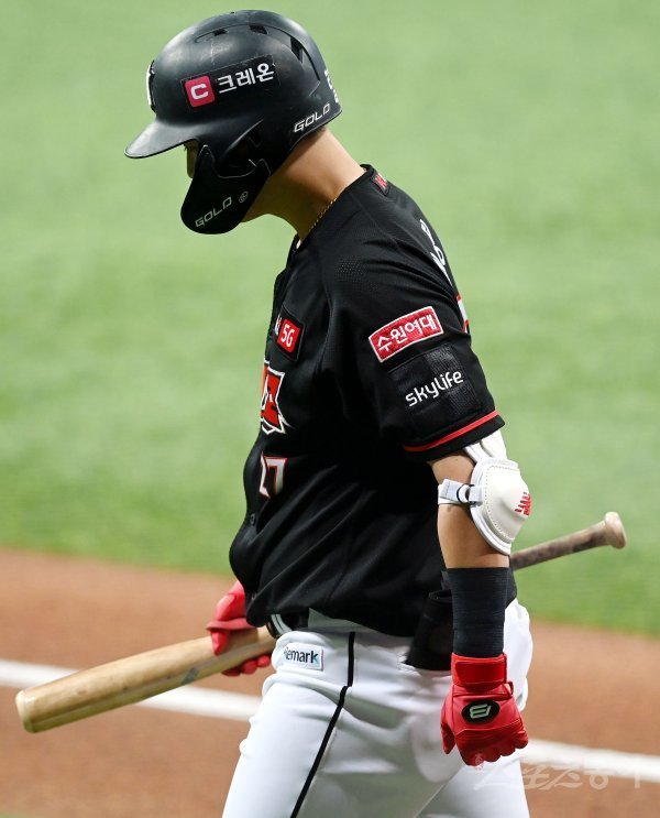 5회초 1사 3루에서 kt 배정대가 삼진 아웃으로 물러나고 있다.