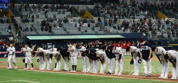 두산이 KT에 2-5로 패배한 뒤 관중석을 향해 인사하고 있다.