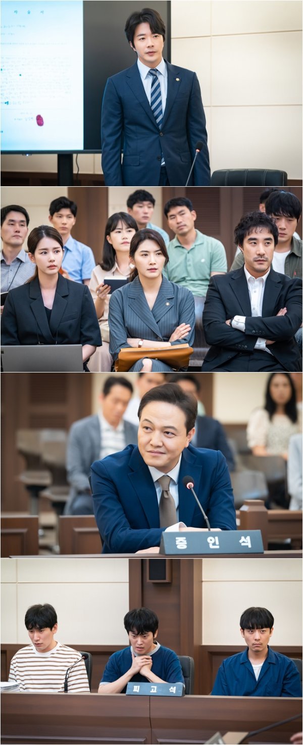 그런 가운데 공개된 사진은 ‘삼정시 3인조 재심’ 재판에 궁금증을 높인다. 사건 기록에 명백한 무죄의 증거가 있음에도, 이를 눈감았던 검찰과 경찰. 증인석을 향해 불꽃 눈빛을 쏘아대는 박태용의 모습에서 그의 분노가 고스란히 느껴진다. 예상했던 것처럼 순탄치 않게 흘러가는 공판에 박삼수, 이유경(김주현 분), 황민경(안시하 분) 역시 초조한 기색이 역력하다. 이와 달리, 자신만만한 표정으로 증인석에 앉아 있는 장윤석(정웅인 분)의 모습이 흥미롭다. 의미심장한 미소를 짓고 있는 장윤석이 쥐고 있는 ‘키’는 무엇일지, 그가 가져올 파란에 이목이 집중된다. 여기에 여전히 두려움에 떠는 삼정시 3인조의 모습도 포착돼 궁금증을 더한다. 과연 박태용과 박삼수가 분위기를 역전시킬 수 있을지, 내막을 알면서도 승산 없는 싸움을 시작한 두 개천용의 정의구현 역전극에 뜨거운 기대가 쏠린다