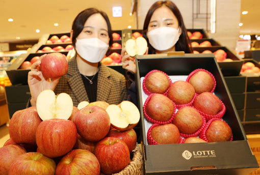 롯데백화점이 29일까지 수도권 매장에서 11월 제철과일 ‘서리맞은 부사사과’를 판매한다. 11월 첫 서리를 맞은 뒤 수확해 당도가 높고 아삭한 식감이 특징이다. 경북 구미 선산읍에서 산지직송을 통해 합리적 가격에 만날 수 있다.