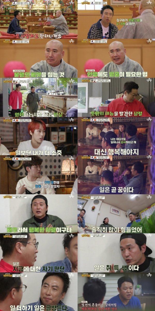 또 박명수는 “김구라가 프로그램 두세 개를 더 하면 배가 아파요”라고 동료에 대한 경쟁심을 꺼냈다. 마가 스님은 “배고픈 건 참아도, 배 아픈 건 못 참는다고 한다. 하지만 남을 질투하며 오버페이스를 하다 보면 파멸이 온다”며 “행복을 원한다면서 남을 질투하고 불행의 씨앗을 심으면 되겠어요? 상생이 답이에요”라고 거침없이 답했다.