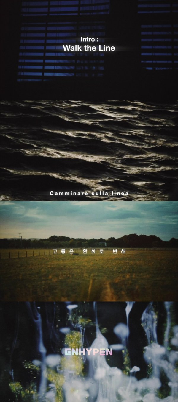 ENHYPEN은 16일 오전 0시 공식 SNS에 인트로 리릭 비디오를 공개했다. 데뷔 앨범 ‘BORDER : DAY ONE’의 첫 번째 트랙인 ‘Intro : Walk the Line’을 가사와 함께 감각적인 영상으로 구현한 콘텐츠다.