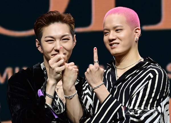 비투비의 새 유닛 비투비 포유(BTOB 4U) 이창섭과 프니엘이 16일 서울 광진구 광장동 예스24 라이브홀에서 열린 미니앨범 1집 ‘INSIDE‘ 발매 쇼케이스에서 포즈를 취하고 있다.