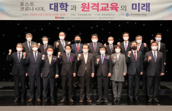 국립 한국방송통신대학교(총장 류수노·이하 방송대)가 11월 12일 방송대 디지털미디어센터 TV 스튜디오에서 포스트 코로나 시대의 대학과 원격교육의 미래를 주제로 심포지엄을 개최했다.정세균 국무총리, 정병석 국·공립대 총장협의회장, 교육부 관계자 참여